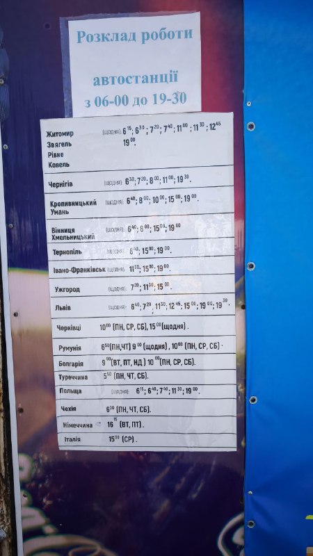 Обращаем внимание на обновленное расписание рейсов автостанции с 06:00 до 19:30: