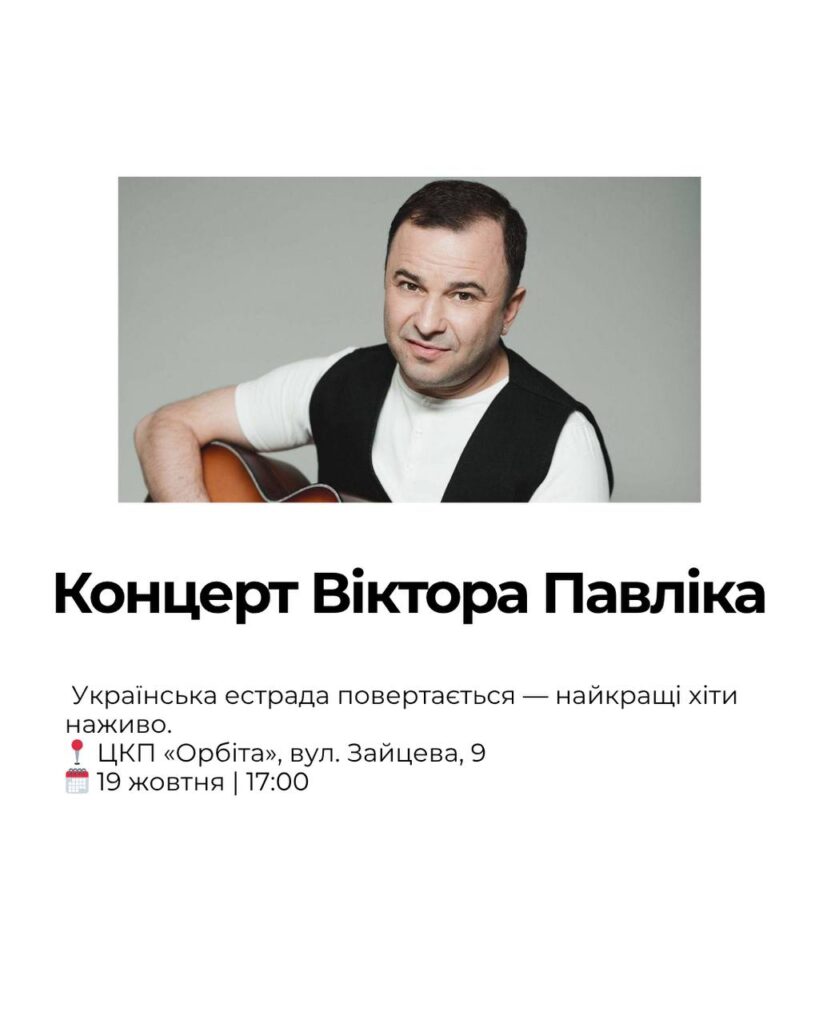 — концерт Виктора Павлика, который подарит слушателям любимые хиты и новые композиции.