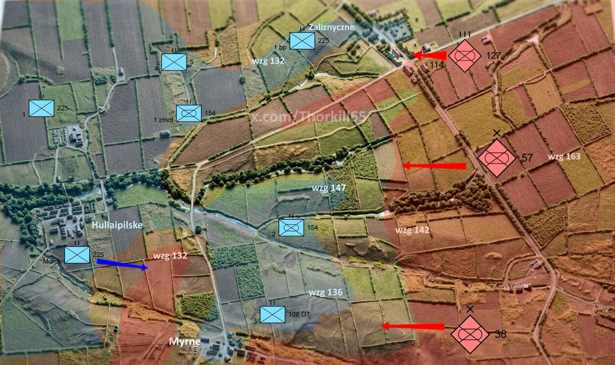 Чтобы сдержать наступление, командование 225-го полка бросило в бой свой основной резервный штурмовой батальон, который сейчас проводит контратаки в районе Староукраинки.