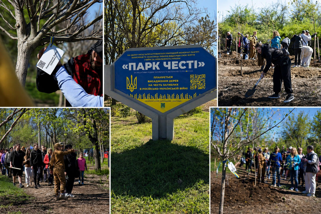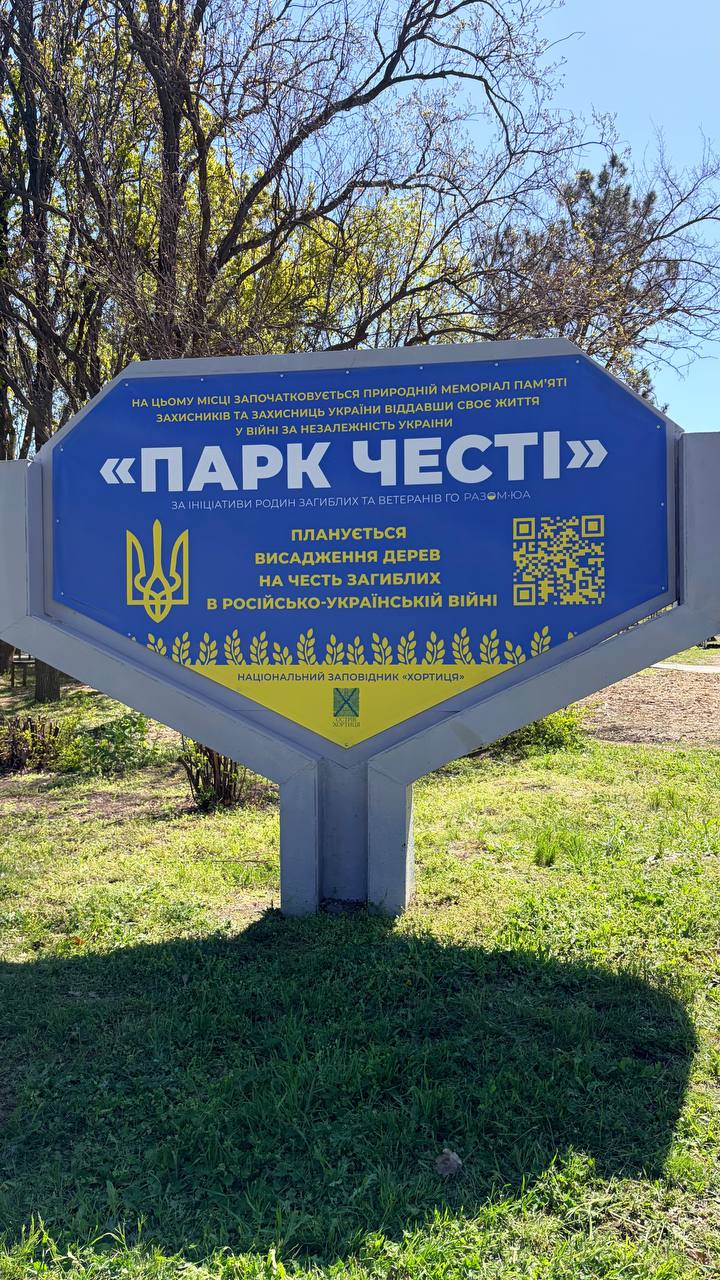 «Парк Чести» был основан весной 2025 года. За это время активисты, семьи погибших, участники юношеского движения «Байда» и специалисты Национального заповедника «Хортица» уже благоустроили около 6 гектаров территории.