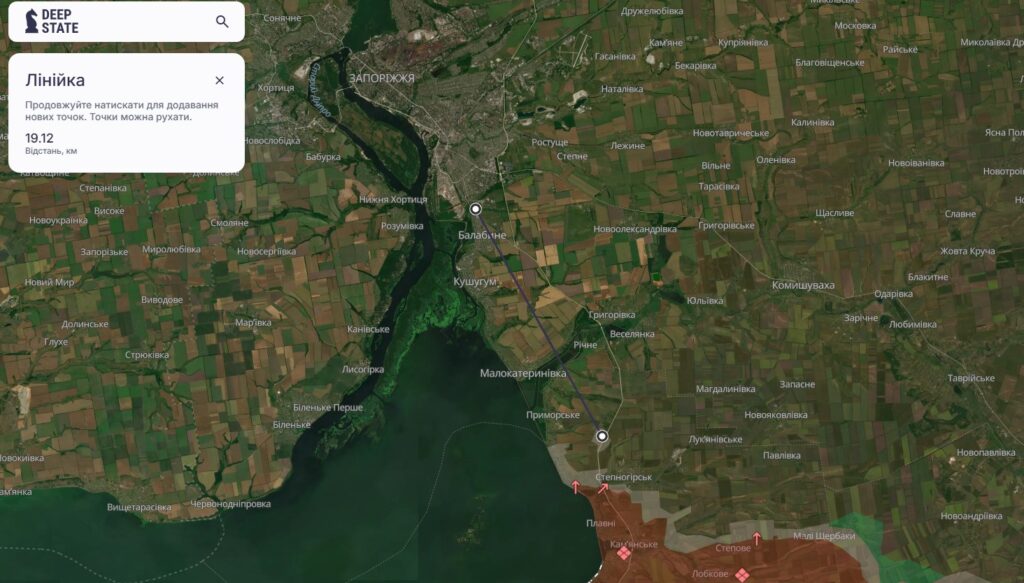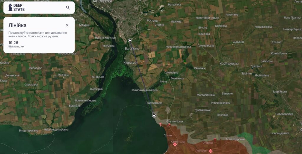 Нажаль, це свідчить про інфільтрацію ворога в середину населеного пункту. Окремі малі групи росіян намагаються закріпитися в розбитих будинках села та накопичитися. Те саме відбувається вздовж траси на Григорівку — росіяни намагаються обійти Степногірськ з північного заходу. Останні точки фіксації ворога показують — окупанти вперше зафікосвані на відстані менше 20 км від південних околиць Запоріжжя (Дослідна станція Космічного району — ред.)