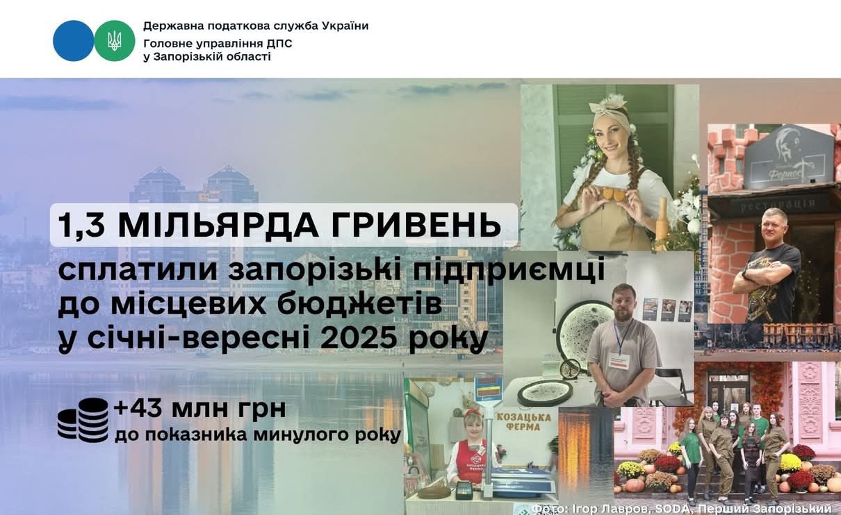 За девять месяцев 2025 года представители малого и среднего бизнеса Запорожской области направили в местные бюджеты 1 миллиард 317 миллионов гривен единого налога.