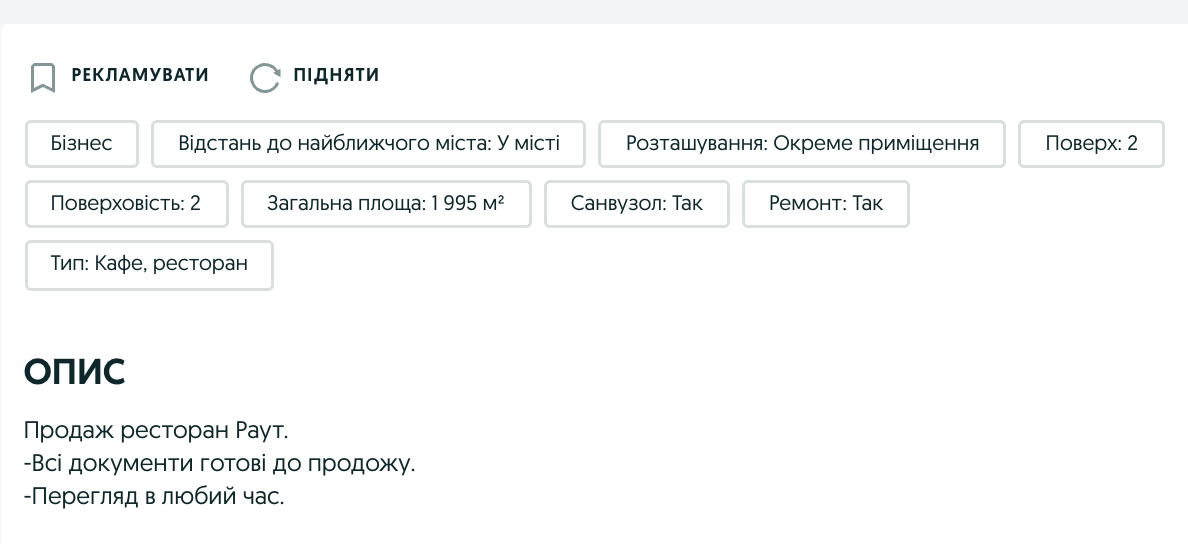В Коммунарском районе Запорожья выставлен на продажу ресторан «Раут» — заведение, которое на протяжении многих лет функционировало как полноценный ресторанный бизнес. Соответствующее объявление появилось на одном из популярных сервисов недвижимости.