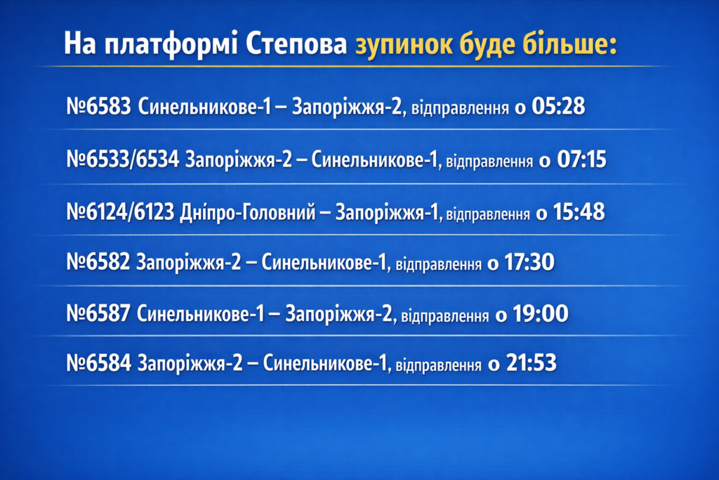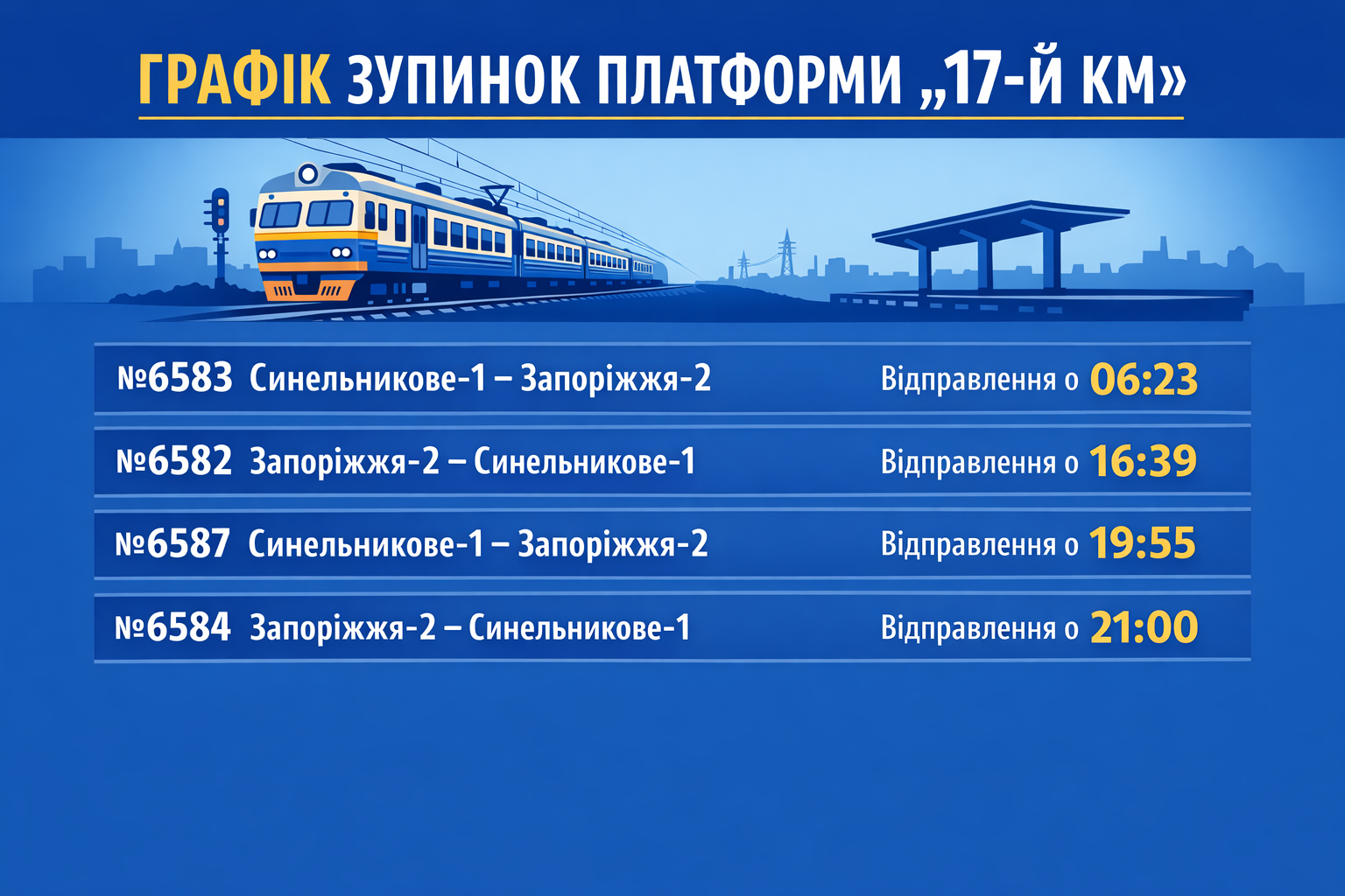 С 1 апреля 2026 года в Запорожской области вновь начнут действовать сезонные остановки на платформах «17-й километр» и «Степовая». Для пассажиров это означает возобновление посадки и высадки на двух пунктах, которые не работали зимой.