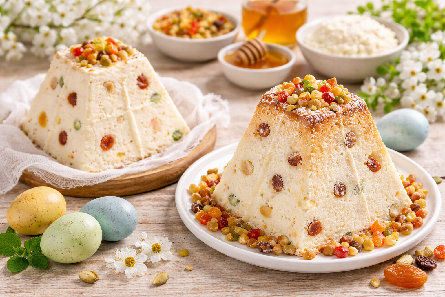 У творожной паски есть одно важное преимущество: она не требует кулинарного «везения». Здесь не нужно гадать, как поведет себя дрожжевое тесто, хорошо ли оно поднимется и не оседет ли после духовки. Основа значительно спокойнее в работе, а результат более предсказуем.
