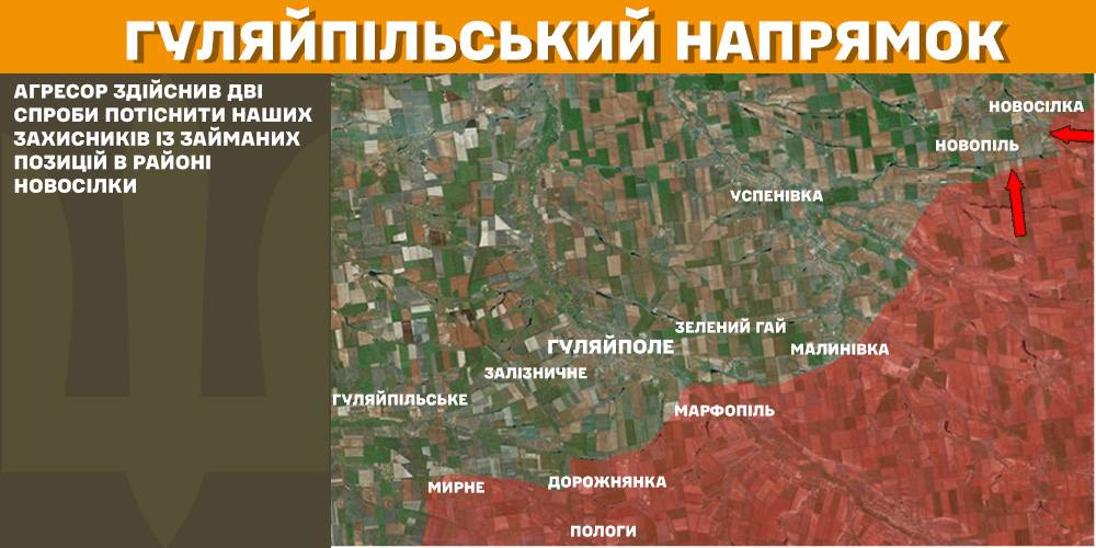 На Гуляйпольском направлении агрессор совершил две попытки потеснить наших защитников с занимаемых позиций в районе Новоселки.