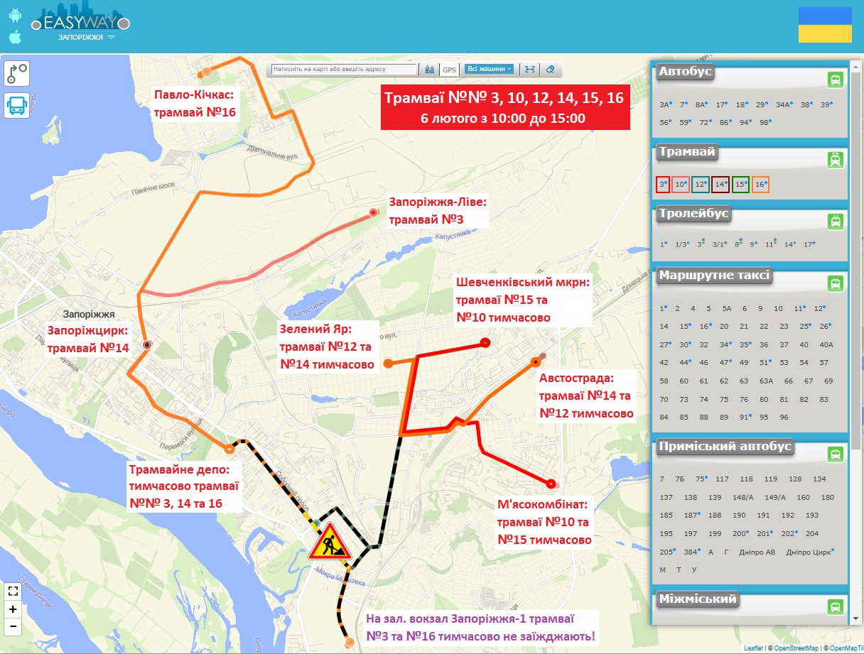 В Запорожье сегодня коммунальный транспорт будет работать с изменениями (КАРТА)
