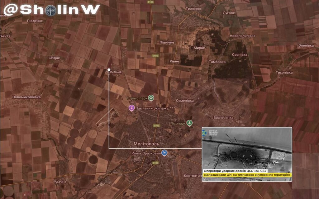 Осинтерами уже определено, что уничтоженная российская база находилась чуть севернее Мелитополя, в районе н.п. Обильное, примерно в 70 км от линии фронта.