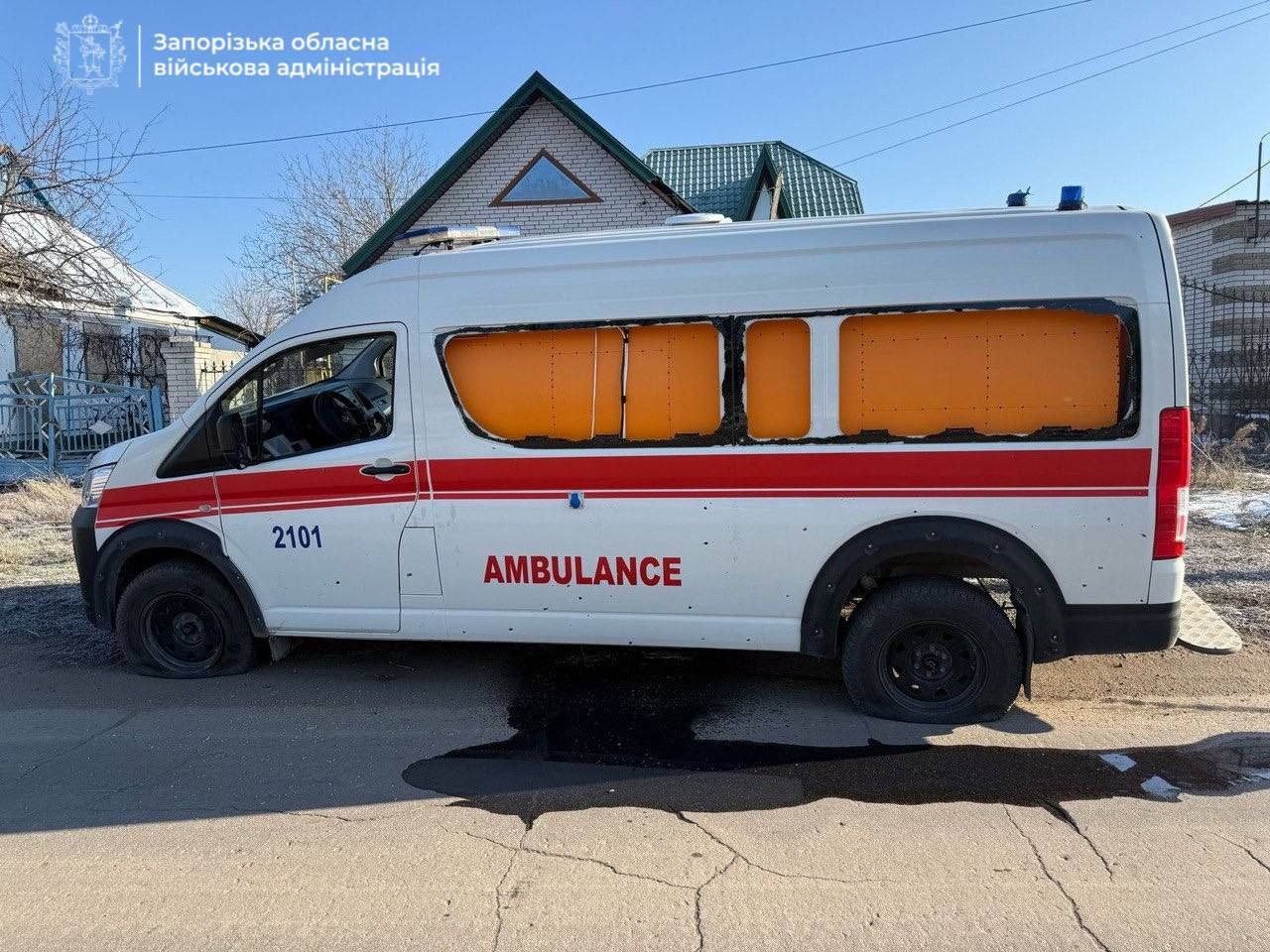 Сегодня, 19 февраля, враг снова атаковал Гуляйполе в Запорожской области. На этот раз вражеские снаряды попали в машину скорой помощи.