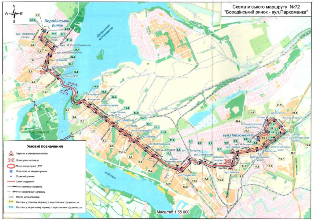 Расписание движения автобусов маршрута № 72 по маршруту «Бородинский рынок — ул. Пархоменко (по конечным станциям) в будние дни