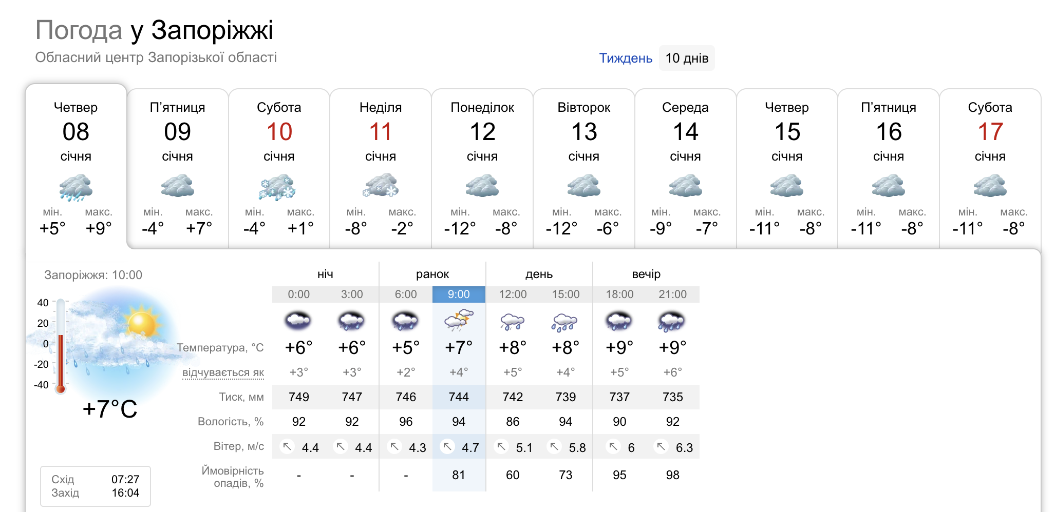 Начало января в Запорожье проходит под знаком нестабильной и контрастной погоды. После относительно теплой погоды с дождями город быстро вступает в фазу настоящей зимы: снижение температуры, мокрый снег, гололед и усиление ветра. Синоптики предупреждают: погодные условия во второй декаде месяца станут значительно более суровыми.