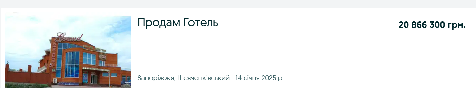 В Запорожье выставили на продажу отель, в который попала российская ракета (ФОТО)