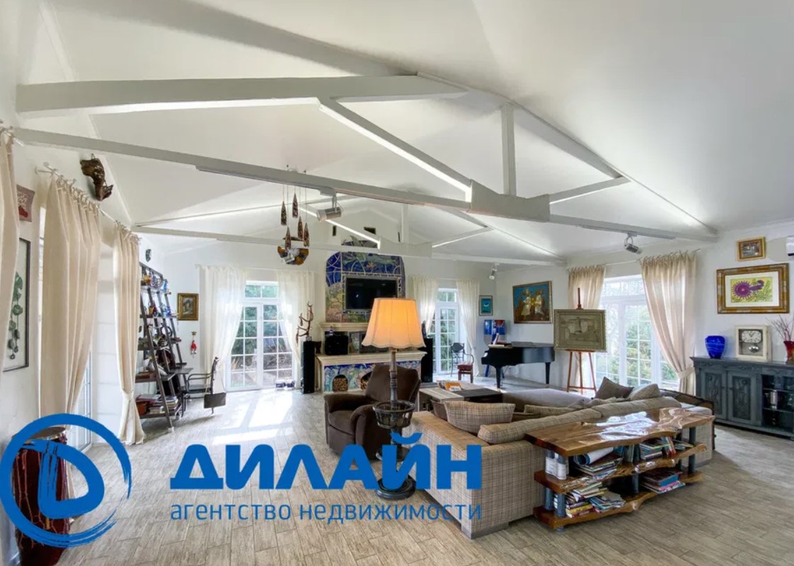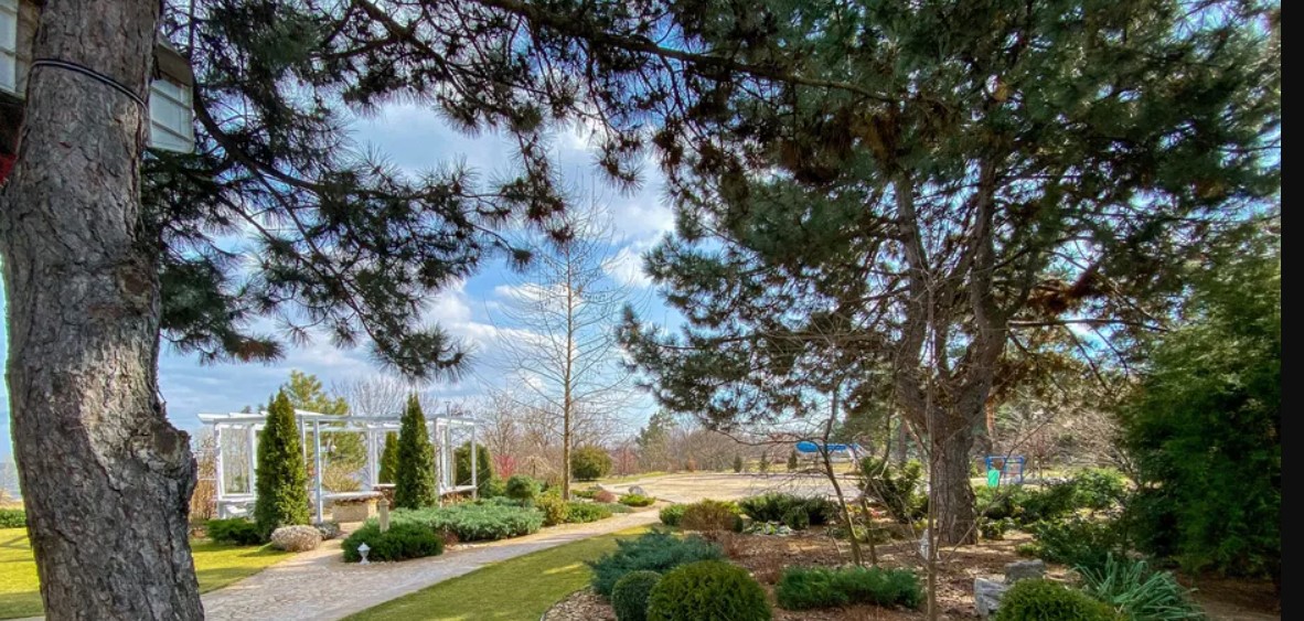 Так, недвижимость находится возле лиу на берегу реки Днепр. Весь участок имеет площадь 35 соток, на котором обустроен ландшафтный дизайн, игровые зоны, беседка и зона для барбекю. Для содержания больших газонов и деревьев работает автоматический полив с отдельной скважиной.