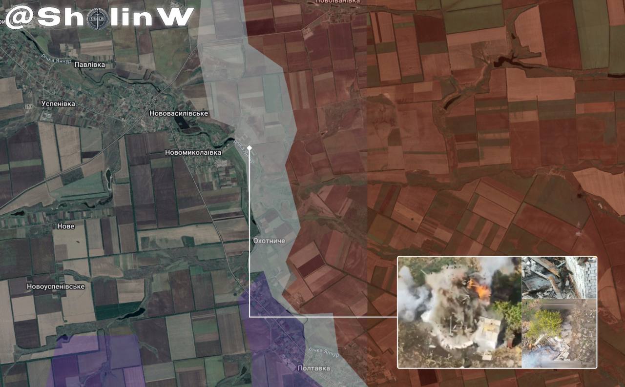 По оценке осинтера SHALIN, россияне постепенно продвинулись к берегу р. Янчул, зайшвощи к Охотничьему и Нововасильевскому. Оккупанты пытаются там закрепиться