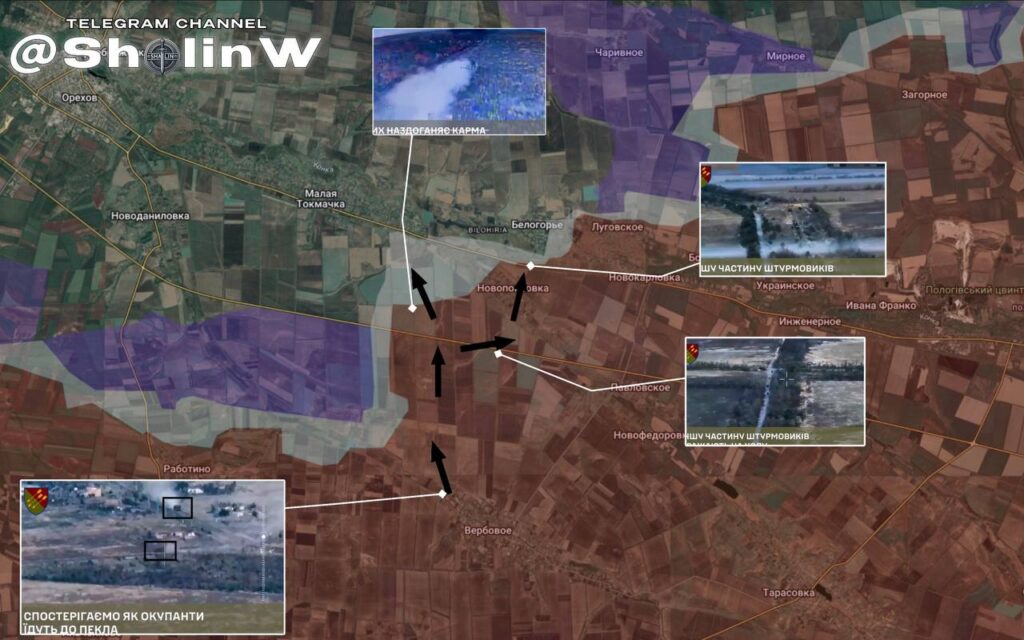 Как можно увидеть на видео от 118-й мехбригады, сначала оккупанты двинулись из Вербового тяжелой техникой просто полями, а следом через дорогу из Новопрокоповки пытались прорваться в поселок российские мотоциклисты. В остальном штурм прорвался. Потери врага: танк, 4 багги, 4 мотоцикла, поврежденные БМП и ББМ, 16 ликвидированных и 10 раненых оккупанта.