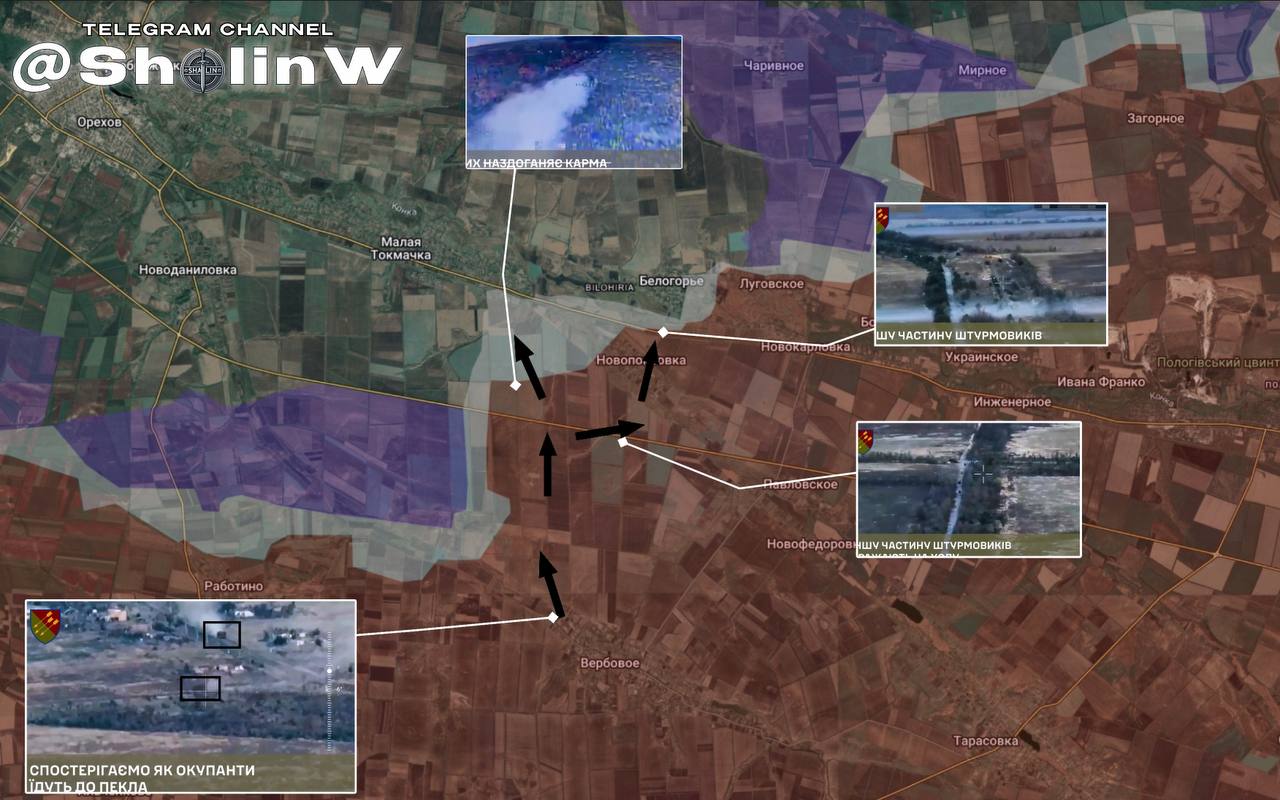 Как можно увидеть на видео от 118-й мехбригады, сначала оккупанты двинулись из Вербового тяжелой техникой просто полями, а следом через дорогу из Новопрокоповки пытались прорваться в поселок российские мотоциклисты. В остальном штурм прорвался. Потери врага: танк, 4 багги, 4 мотоцикла, поврежденные БМП и ББМ, 16 ликвидированных и 10 раненых оккупанта.
