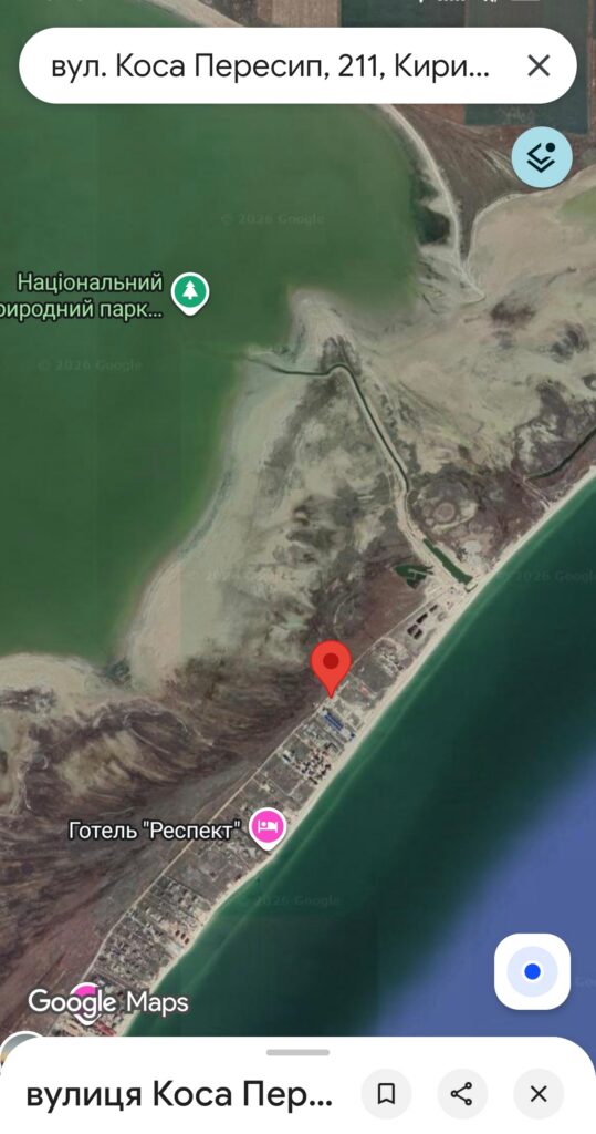 Согласно гугл-карте, адрес ул. Коса Пересыпь, 211 расположен в конце косы — рядом есть несколько баз отдыха.