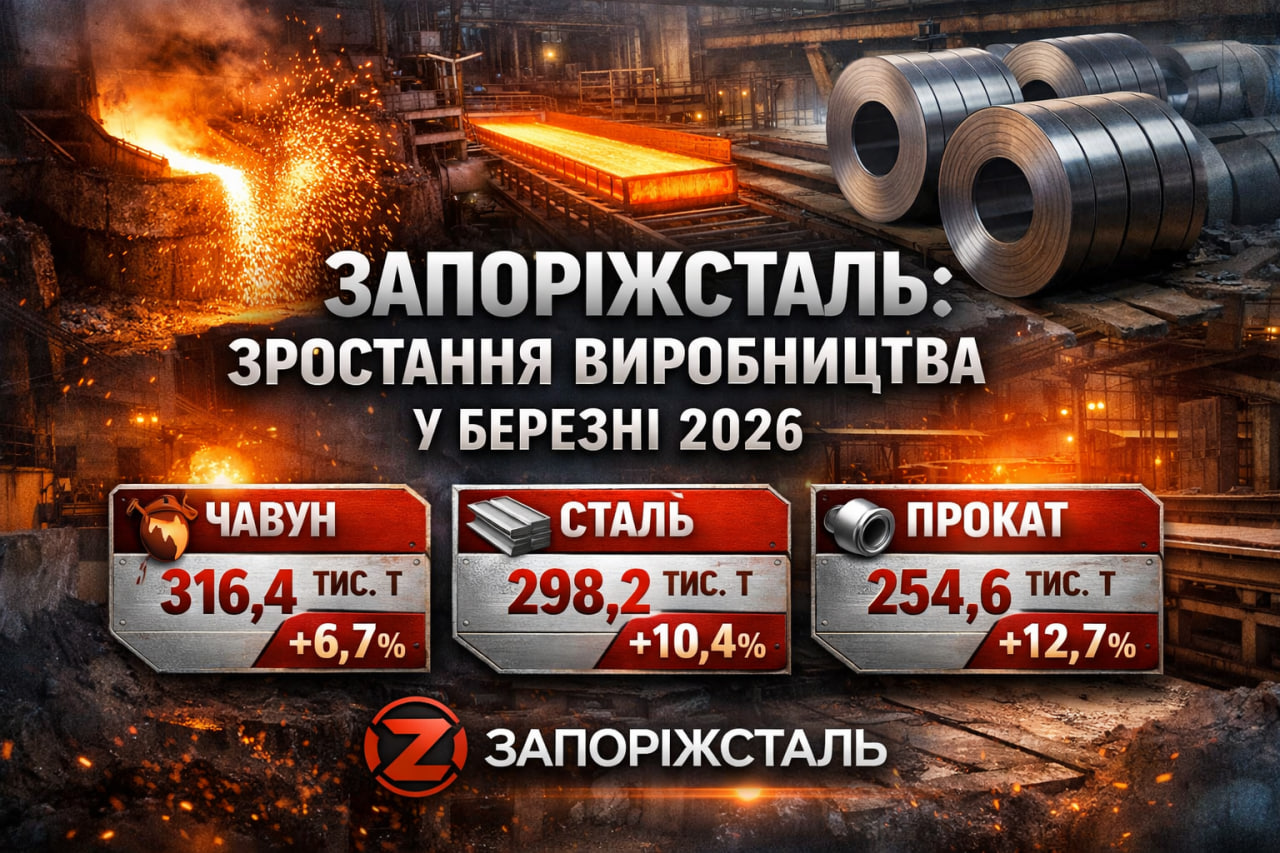 В марте 2026 года комбинат «Запорожсталь» продемонстрировал рост производства по всем основным показателям по сравнению с аналогичным периодом прошлого года. В то же время итоги первого квартала оказались неоднородными — при росте выпуска стали и проката было зафиксировано снижение производства чугуна.
