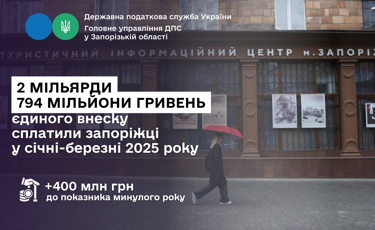 Как сообщила и.о. начальника Главного управления ГНС в Запорожской области Оксана Федорова, уплаченная сумма превысила показатель аналогичного периода прошлого года на 400 миллионов гривен.