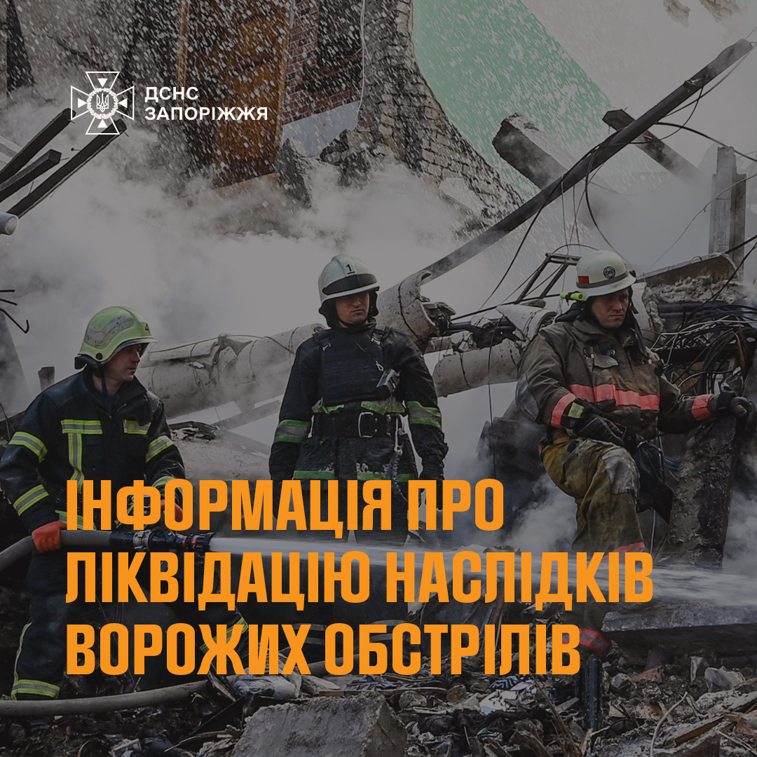 У Головному управлінні ДСНС України у Запорізькій області повідомили про ліквідацію наслідків ворожих обстрілів впродовж доби 24 квітня.