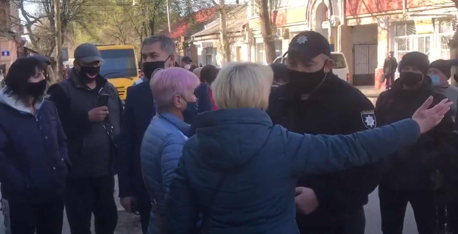 Порядка 10 человек, стоя на площади, записали видеообращение к главному санитарному врачу Украины Виктору Ляшко с требованием открыть рынки.