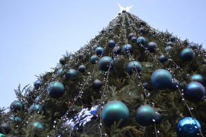 В издании пишут, что главная искусственная красавица города выглядит не только празднично, но и стильно. Высота ели – 25 метров. На ней повесили тысячу шаров разных размеров и украсили гирляндами.