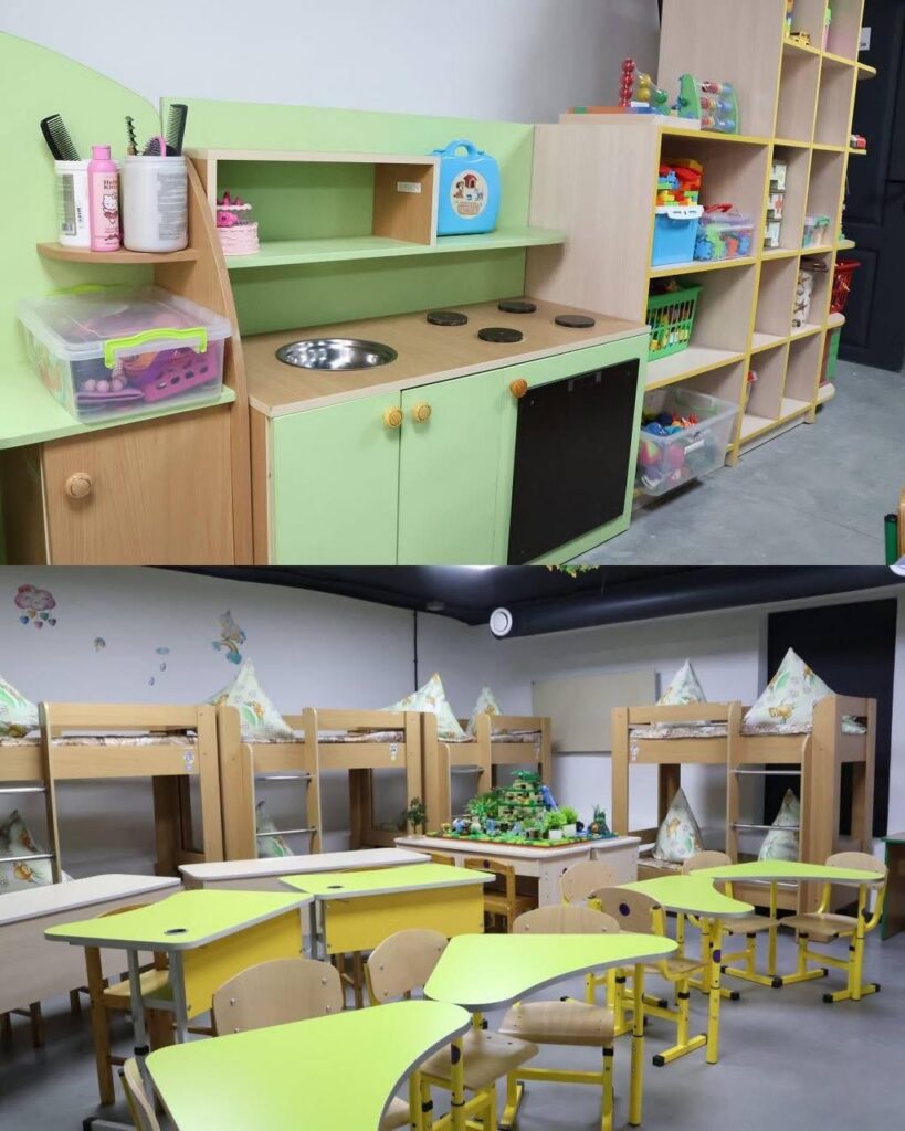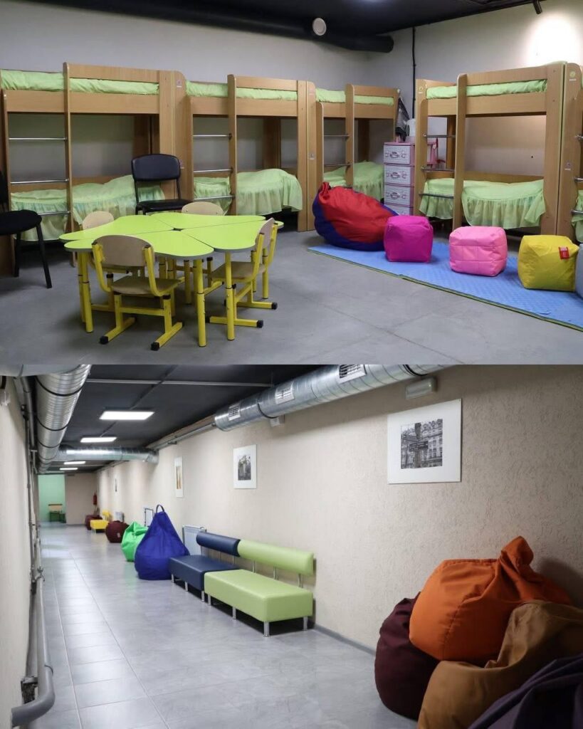 Окрім технічного оснащення, укриття адаптують для комфортного перебування дітей. Там створюють санітарні кімнати, навчальні зони та місця для відпочинку.