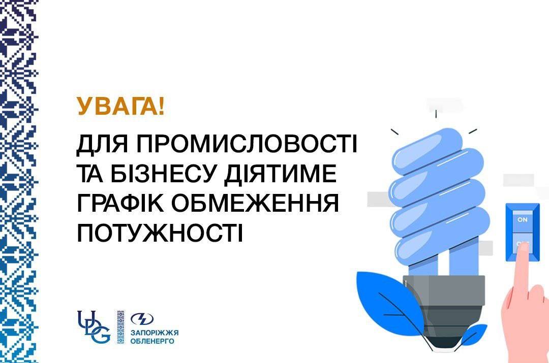 Відповідно до рішення НЕК «Укренерго», 27 жовтня, на території Запорізької області діють графіки обмеження потужності (ГОП), які стосуються лише промислових підприємств і бізнесу. Згідно з розпорядженням, обмеження запроваджено у два часові проміжки: з 07:00 до 11:00 та з 15:00 до 19:00.