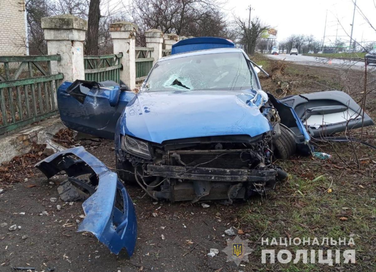 Смертельное ДТП: в Бердянске Ауди разбилась вдребезги, въехав в дерево и столб (ФОТО)