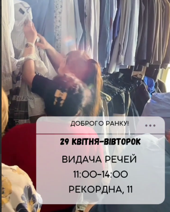 Сьогодні з 11:00 до 14:00 у волонтерському центрі “Гарне місце” відбудеться видача речей.