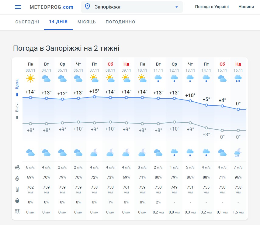 То коли? Поки що немає чіткого сигналу, що середньодобова температура утримається на рівні +8 °C чи менше протягом трьох днів поспіль. Зазвичай денна температура ще понад +10 °C, нічна переважно вище +4-6 °C, що підсумовує середньодобову температуру вище порогової. Таким чином — запуск може затриматися на кілька днів чи тижнів. Поки так виглядає, що запуск опалення в Запоріжжі найбільш ймовірний після 10 листопада.