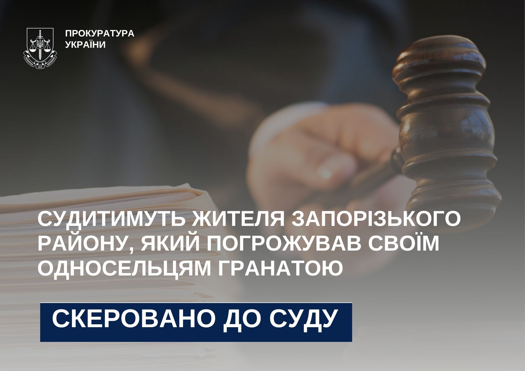 Судитимуть чоловіка із Запорізького району, який кинув гранату у двір сусідів