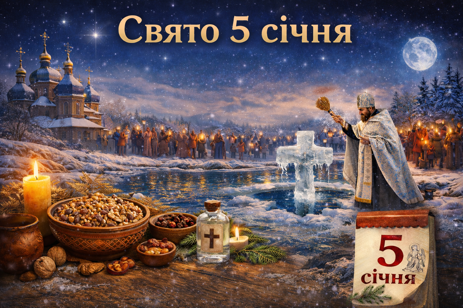 За церковним календарем, 5 січня — Надвечір’я Богоявлення Господнього. Саме цього дня віряни готуються до спогаду Хрещення Ісуса Христа в річці Йордан.