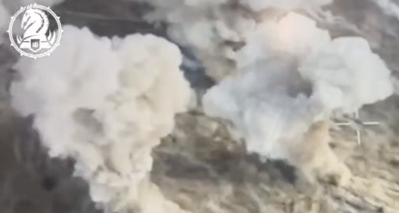 На відео показано, як російський танк підривається на мінах, далі працює ТОС (сімейство російських важких вогнеметних систем залпового вогню), по своїх же військових-росіянах.