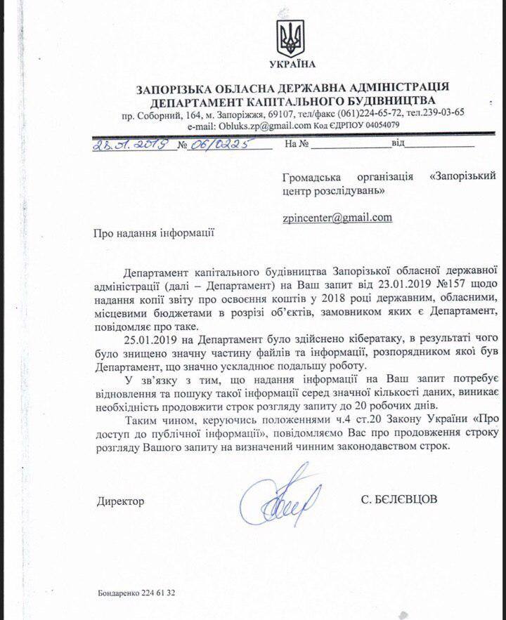 То следствие, то хакеры: в Запорожье департамент капстроительства не может предоставить отчет об освоении денег