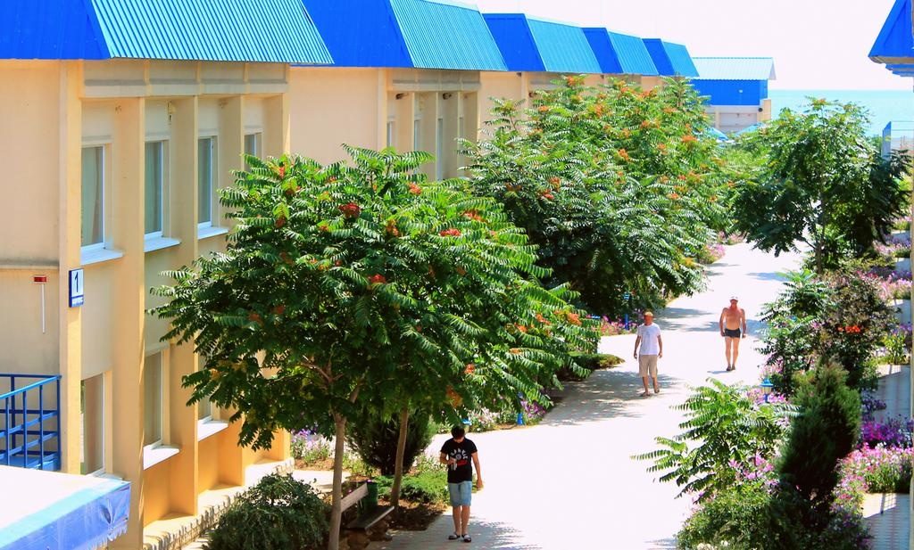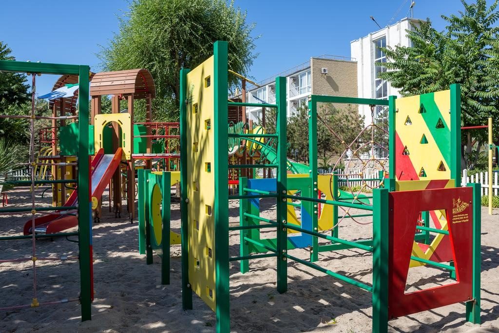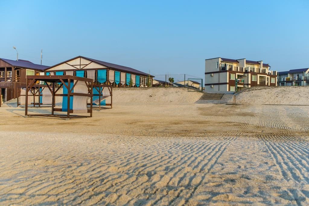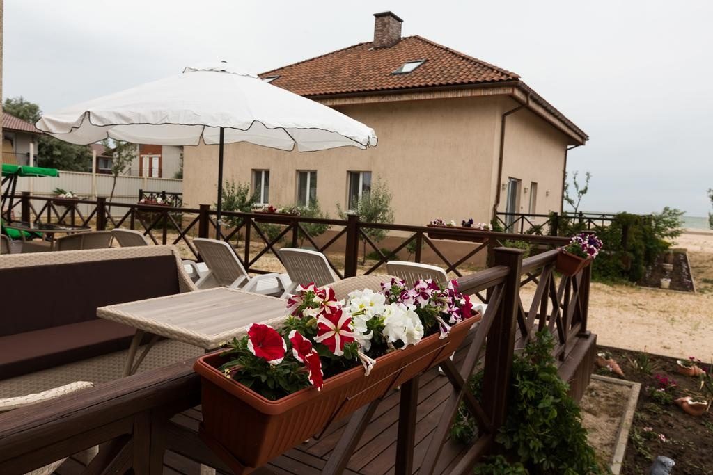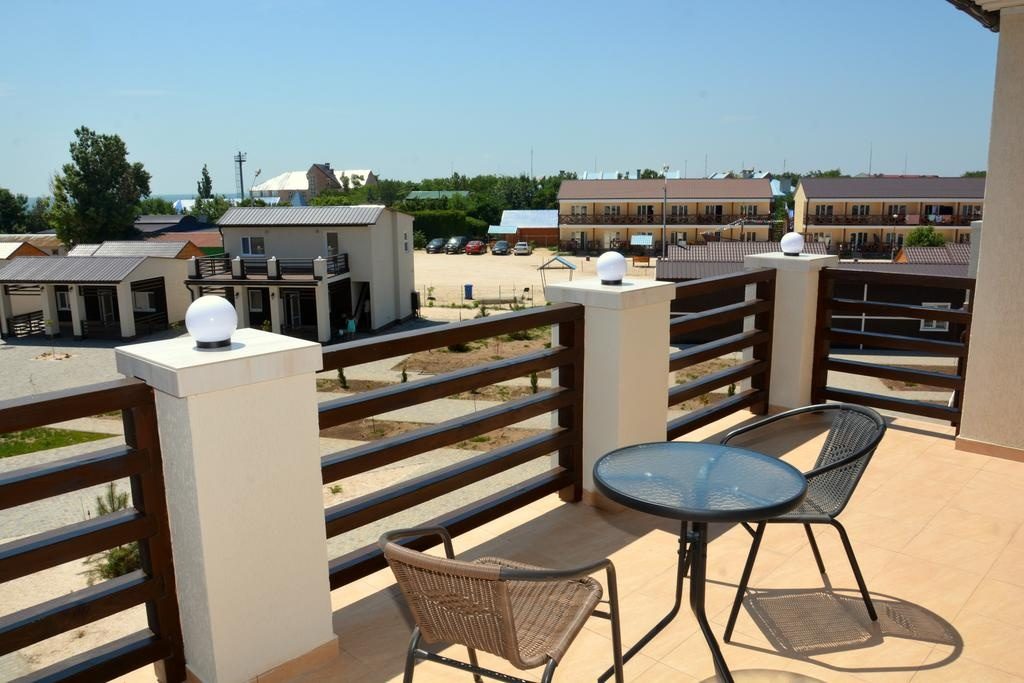 Еще один дорогой отельный комплекс находится в Кирилловке. Тут для гостей есть большая территория с бассейном, детская площадка, принадлежности для барбекю и выход к пляжу. В номерах есть Wi-Fi, кабельное телевидение, чайник, холодильник, мини-кухня.
