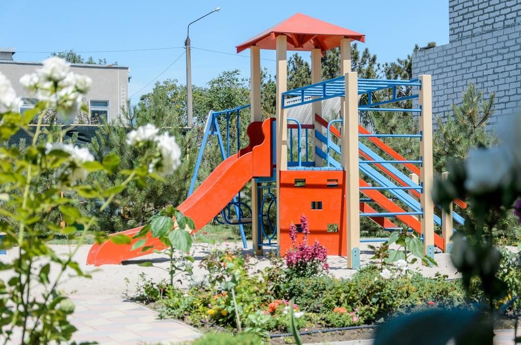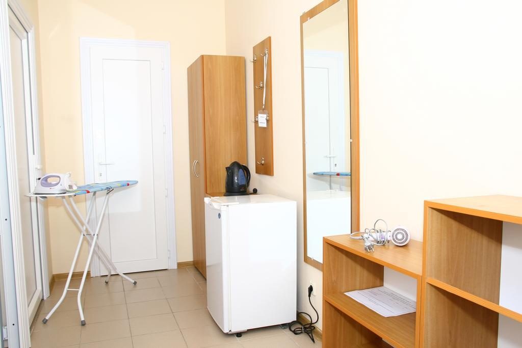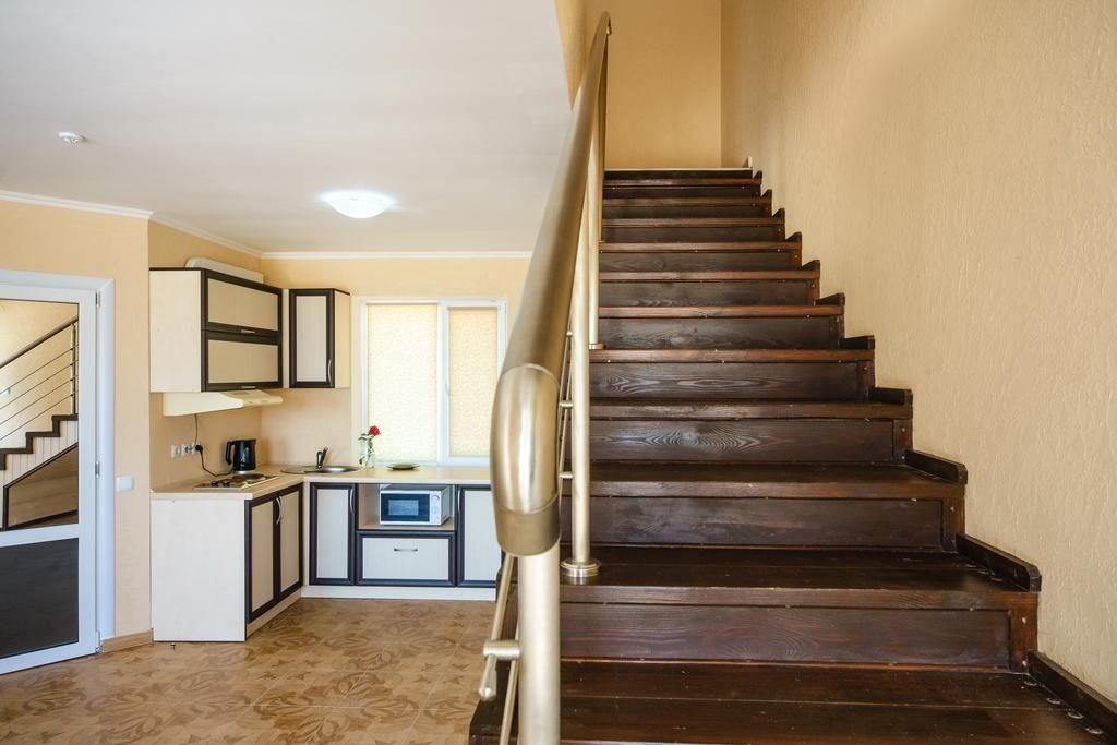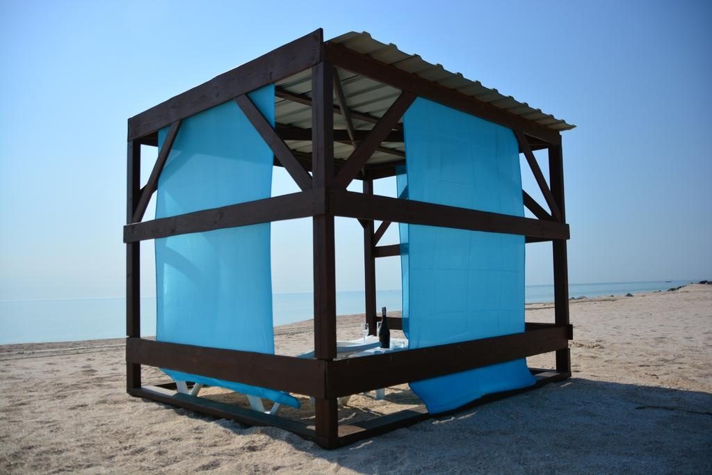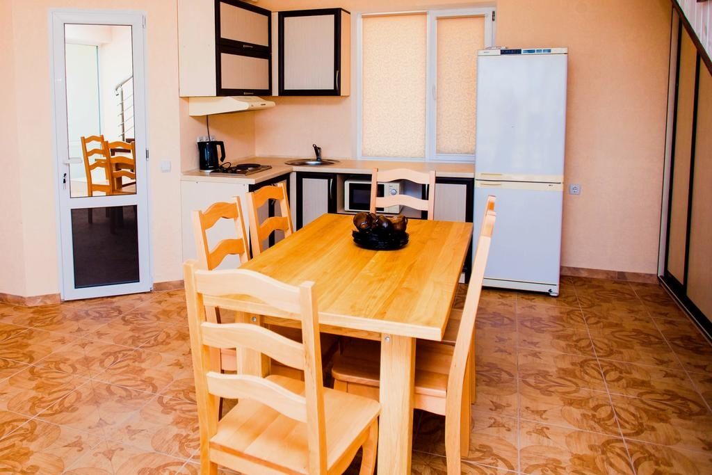 Еще один дорогой отельный комплекс находится в Кирилловке. Тут для гостей есть большая территория с бассейном, детская площадка, принадлежности для барбекю и выход к пляжу. В номерах есть Wi-Fi, кабельное телевидение, чайник, холодильник, мини-кухня.