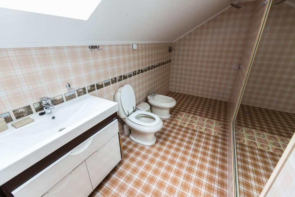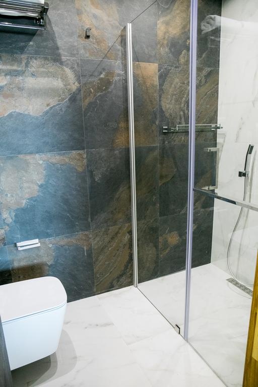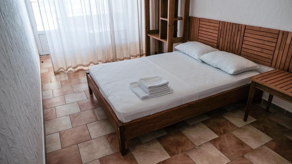 Сами номера довольно большие. В некоторых есть терраса, кондиционер, телевизор, стиральная машинка, кухня и чайник, ванные комнаты. Номера стоят довольно дорого, но питание не включено. Можно заказать только завтрак за 100 гривен.
