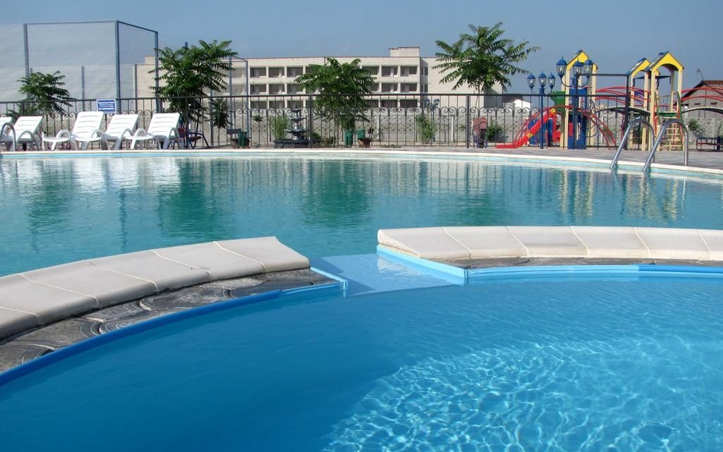 Здесь гостей тоже ждет большой открытый бассейн, ресторан, детская площадка, бильярд, Wi-Fi, спутниковое телевидение, парковка. За деньги можно заказать трансфер из или до аэропорта. Но самый большой плюс – в стоимость входит трехразовое питание.