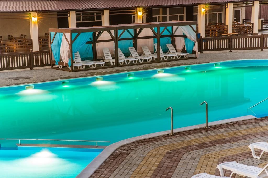 Это очень стильный комплекс в Кирилловке. На территории есть большой открытый бассейн и ресторан. Работает круглосуточная стойка регистрации и бесплатный Wi-Fi.