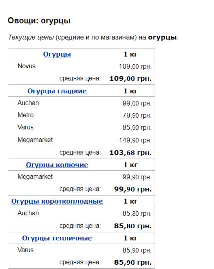 Огірки цього місяця знову здивували своєю вартістю. Овоч різко подешевшав із 184,63 до 109 гривень за кілограм. Колючі огірки впали в ціні на 110 гривень за цей період і зараз коштують 99,90. Тепличні огірки стали дешевшими зі 119,94 до 85,90. Ціна на гладкі огірки змінилася зі 132,17 до 103,68. Також помітно знизилася вартість короткоплідних огірків — з 163,37 до 85,80.