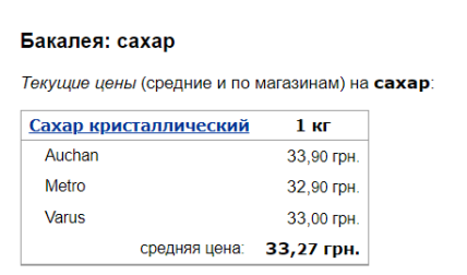 У порівнянні з вищезгаданими продуктами вартість цукру змінилася незначно — з 33,73 до 33,27 грн.