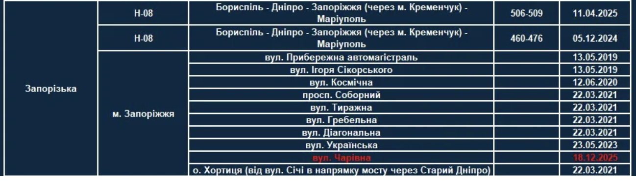 Окрім Запорізької області, оновлення торкнулися також Дніпропетровської, Київської, Львівської, Одеської, Миколаївської, Сумської, Харківської та інших областей.
