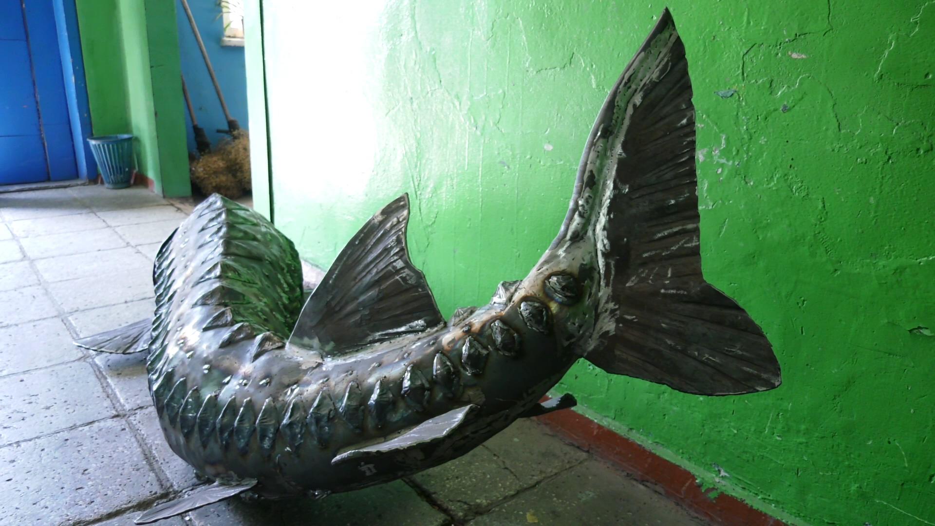 Над созданием кованой композиции трудились студенты и мастера Бердянского профессионального машиностроительного лицея. Сейчас мастер БМПЛ Александр Шапошник работает в одни руки, т.к. учебное заведение работает в режиме карантина, а студенты учатся дистанционно. Композиция будет состоять из двух огромных рыбин из семейства осетровых – осетра и белуги, отлитых из металла, которые поместят в сетку, передает “Про Бердянск”.