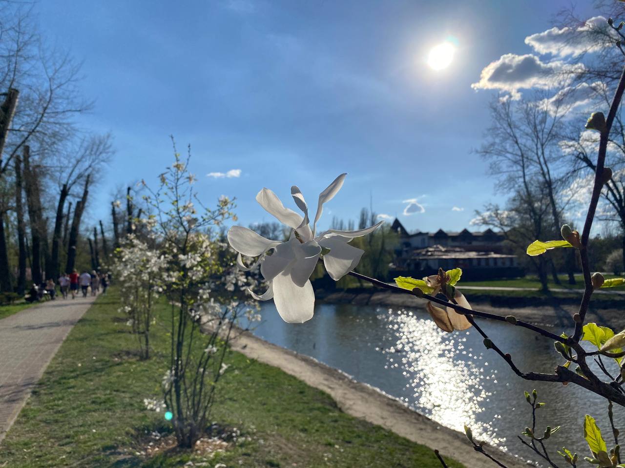 З приходом потепління у Запоріжжі раніше звичайного почали квітнути фруктові дерева й квіти. В Дубовому Гаю розцвіли білі магнолії, які висаджені вздовж ставка.