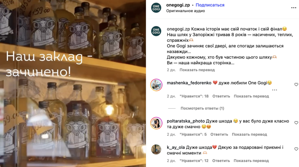 Команда ресторації оголосила про завершення роботи на своїй сторінці. У зверненні зазначено, що за цей час One Gogi зумів стати місцем зустрічей, сімейних свят і «теплих, справжніх історій». Заклад дякує кожному гостю, який був частиною цього шляху.