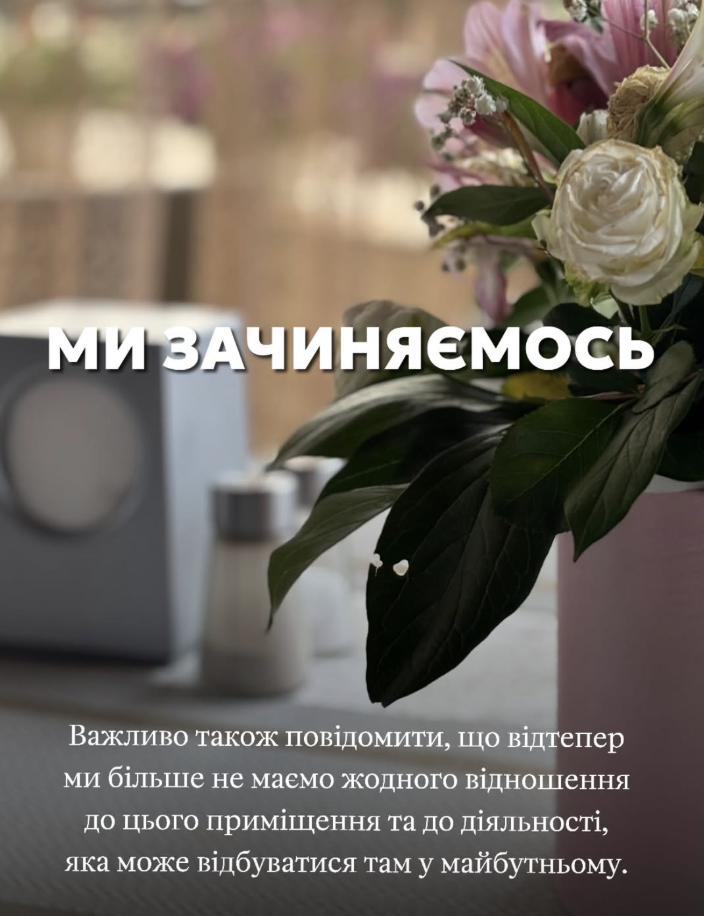 «Відтепер ми більше не маємо жодного відношення до цього приміщення та до діяльності, яка може відбуватися там у майбутньому», — йдеться у повідомленні.