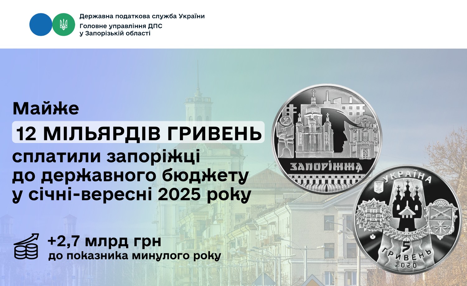 У вересні запоріжці сплатили до державного бюджету 1 мільярд 268 мільйонів гривень, що на 326 мільйонів гривень або на 35 відсотків більше, ніж у серпні 2024 року.
