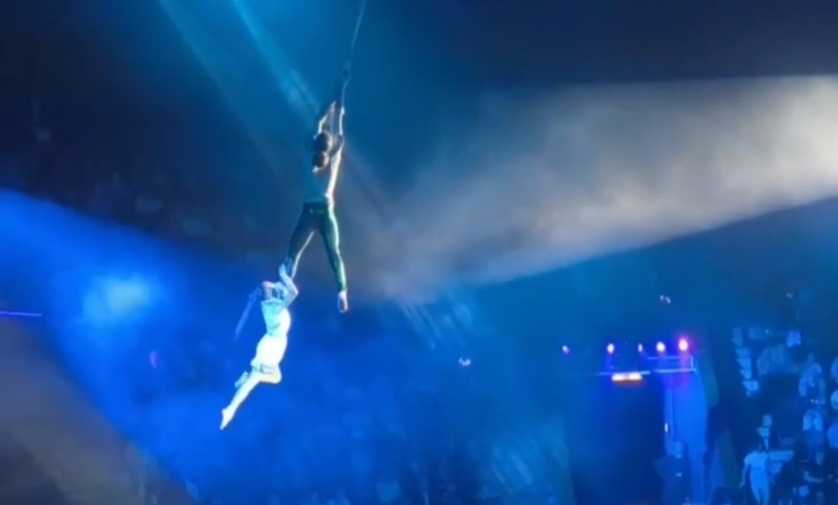 Повідомляється, що під час виконання номеру артисти, молодий хлопець та дівчина зірвалися з висоти та впали на підлогу арени цирку.