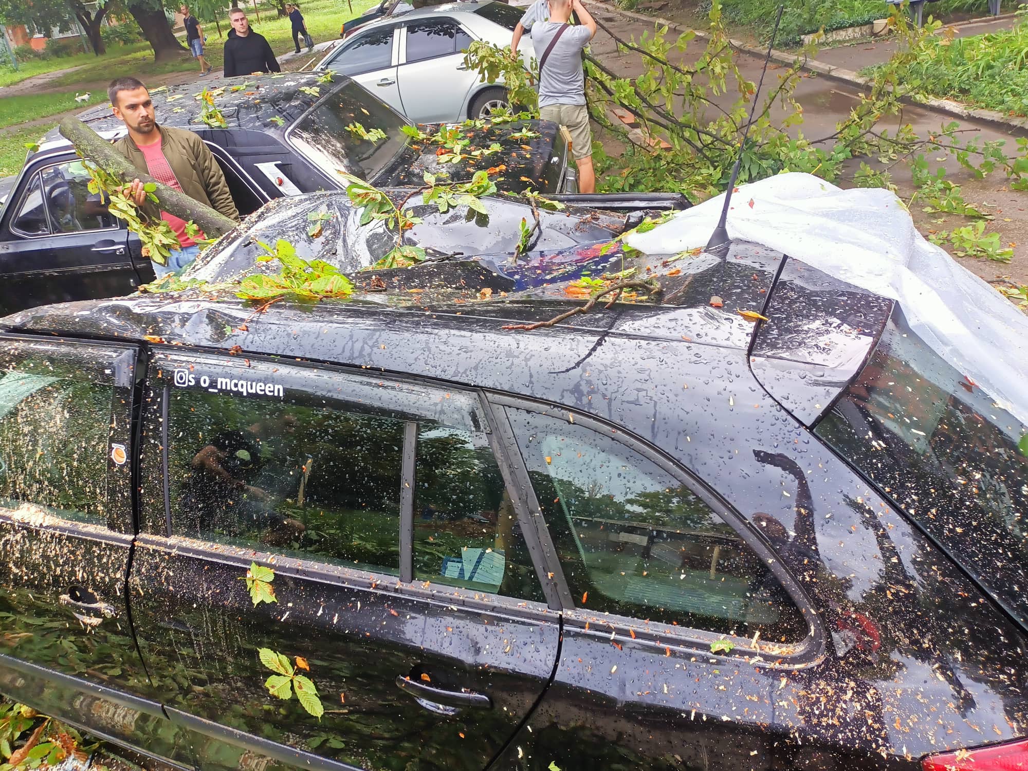 “Аварійне дерево впало на декілька припаркованих біля будинку авто. Ми зверталися в особистому порядку до голови ОСББ. Ще з червня місяця дерево почало тріскатися. Було видно тріщини. Дерево, висотою вище п’ятого поверху, впало та розбило нашу автівку. Також постраждали сусідні авто. Голова ОСББ стверджує, що всі дерева придатні та не є аварійними. Вона не звертала уваги на звернення громадян. На щастя, негода була вночі та діти, мешканці не постраждали. Звернення в поліцію було вблизько 5-ти ранку, довгий час на виклик не приїжджали. Ми наголошуємо, на тому, що мають задокументувати подію та видати відповідний акт”.